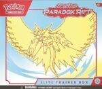 - The TCG: Scarlet & Violet¡ªParadox Rift Elite Trainer Box includes 9 TCG: Scarlet & Violet¡ªParadox Rift booster packs. 1 full-art foil promo card featuring Scream Tail or Iron Bundle. and 65 card sleeves featuring Roaring Moon or Iron Valiant.